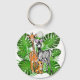 Safari friends, giraffe, zebra, tiger, palm leaves key ring