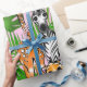 Safari friends, giraffe, zebra, tiger, palm leaves wrapping paper
