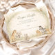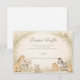 Soft watercolor safari friends gather beneath delicate jungle foliage in this charming neutral baby shower design. A sweet giraffe, elephant, zebra, lion, and tiny companions sit together on a warm parchment background framed by airy greenery and subtle botanical textures. The muted beige, sage, and soft earth tones create a calm, gender-neutral aesthetic that feels both elegant and playful. Perfect for a safari theme, jungle celebration, or modern woodland-inspired gathering.