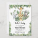 Featuring hand-painted watercolor animals — a sweet giraffe, baby elephant, lion cub, and zebra — surrounded by lush tropical greenery, this charming design is perfect for a gender-neutral baby shower. The elegant mix of playful artwork and modern fonts adds a stylish touch, making it ideal for both casual and upscale gatherings.