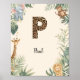 Safari Jungle Personalized Name Monogram P Nursery Poster
