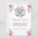 Safari Pink Floral Elephant Baby Shower Thank You Card