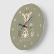 Inspire high aspirations every time your child checks the hour with this lovely giraffe portrait wall clock. The clock face showcases A tall, friendly giraffe and the encouraging caption, "REACH FOR THE SKY." This functional piece is easy to read and perfect for teaching time. Its soft, contemporary colors and sweet design make it an excellent focal point for any young child's bedroom or play area. Part of our coordinated 'Kid's Safari Decor' collection. Note: design adapted from generative content.
