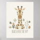 This sweet, stylized giraffe portrait, featuring unique markings and a friendly face, stands tall against a calming, ivory white background. Surrounded by soft, earthy-toned botanicals, the artwork has a contemporary, gentle safari feel. The positive caption, "REACH FOR THE SKY," encourages young children to dream big and aim high. This charming poster is a wonderful piece of gender-neutral decor for a playroom or a child's bedroom, blending effortlessly with boho, modern, or nature-inspired themes. Part of our coordinated 'Kid's Safari Decor' collection. Note: design adapted from generative content.