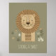 Complete your safari decor with this charming and comforting lion portrait print. The artwork features a sweet, stylized lion surrounded by a magnificent, striped mane. Set against a muted olive-green background and accented by subtle botanical elements, the design is both modern and gentle. The positive caption, "STRONG & SWEET," makes this an inspiring piece of decor to encourage bravery and kindness in a young child. This poster is an excellent choice for a gender-neutral or jungle-themed bedroom or playroom. Part of our coordinated 'Kid's Safari Decor' collection. Note: design adapted from generative content.