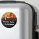 Safari scene MAGNET (or name tag) with lion cub, sunset and Africa tribe under Acacia tree collage (lion cub photo taken by Christine Eichin while on an African safari in Ishasha sector of Queen Elizabeth National Park in Uganda) - Above and Beyond Africa, Your Safari Expert, 1-877-GO-ON-SAFARI, www.YourSafariExpert.com