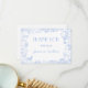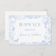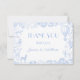 Elegant Blue Toile de Jouy Floral Baby Shower Flat Thank You Card, featuring a charming safari animal theme. This beautifully designed Thank you Card showcases a hot air balloon along with adorable safari animals like a giraffe, elephant, zebra, and lion, all set against a blue floral chinoiserie background. With its vintage aesthetic and graceful typography, this card sets the tone for a timeless celebration. Fully customisable to match your event details, it's the perfect choice for a boy's safari-themed baby shower, blending charm and sophistication.