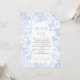 Elegant Blue Toile de Jouy Floral Baby Shower Flat Thank You Card, featuring a charming safari animal theme. This beautifully designed Thank you Card showcases a hot air balloon along with adorable safari animals like a giraffe, elephant, zebra, and lion, all set against a blue floral chinoiserie background. With its vintage aesthetic and graceful typography, this card sets the tone for a timeless celebration. Fully customisable to match your event details, it's the perfect choice for a boy's safari-themed baby shower, blending charm and sophistication.