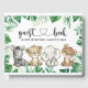 Customised Safari Wild Animals Birthday Guest Book. Adorable jungle-themed guest book featuring cute safari animals and rustic tropical greenery. Matching items available in our store!