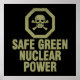 The slogan "Safe Green Nuclear Power" written in an original  bold distressed headline style font along with an equally distressed stencilled poison symbol. You can't kill irony.