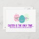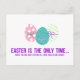 This funny Easter design features colourful Easter eggs and says “Easter is the only time it is safe to put all your eggs in one basket.”  Customise this with your own images or text by clicking the "Customise it" button.