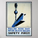 Poster from the Works Progress Administration showing a steel girder being lifted by a crane, promoting work site and worker safety.