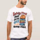 A colourful, humourous, and sarcastic T-shirt design featuring a whimsical illustration of a coffee mug with a safety helmet on top. The text on the shirt reads, "SAFETY FIRST JUST KIDDING COFFEE FIRST.