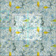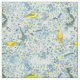 A pretty fabric for spring featuring saffron finches and warblers in a blooming fruit tree in spring with a stormy grey sky in the background illustrated with blue ink and watercolor. Great for home decor, crafting, quilting, and more!
