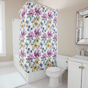 Forest Floral Pink Yellow Shower Curtain