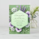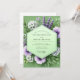 Evoke the serene beauty of a springtime field with this elegant botanical design. A soft sage green background provides a tranquil setting for a lush arrangement of purple and white anemones. Sprigs of delicate lavender and fresh greenery complete this romantic and naturalistic composition for your special day.