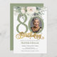 Sage and Gold Floral Photo 80th Birthday Invitation