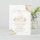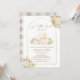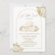 Celebrate your sweet little lamb with this elegant baby shower invitation featuring a soft watercolor lamb illustration framed inside a delicate gold arched border with romantic cream floral accents.