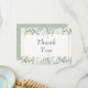 Sage and lilac pasture thank you card, featuring pretty sage and lilac leaves tumbling over an elegant gold frame enclosing your thank you details set in classic elegant text. You can write a thank you note on the reverse or delete the text and leave it blank if you prefer. Designed by Thisisnotme©