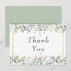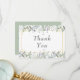 Sage and lilac pasture thank you card, featuring pretty sage and lilac leaves tumbling over an elegant gold frame enclosing your thank you details set in classic elegant text. You can write a thank you note on the reverse or delete the text and leave it blank if you prefer. Designed by Thisisnotme©