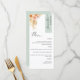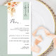 Why spend in place cards and menu cards when you can have an elegant All-in-one elegant Menu personalized with each guest name! Contemporary, simple and elegant design with exquisite watercolor floral detail in a beautiful blend of peach, orange, blush, dusty coral, cream and champagne hues. Modern hand written calligraphy elements. Stripe on the top right corner in sage green tone with guest name in black. Back in same sage green as stripe. Ability to change both stripe color or back by selecting "customize further". NOTE: please an individual order for each menu by adding guest name into menu, add menu into shopping cart; then come back to menu, add second guest name, add menu to shopping cart...continue with this process with all guest names on your list. Zazzle does not receive guest names lists to print. For short first guest names add with your keyboard spacebar a few empty "spaces" before name to center. Design available in a variety of color choices. Part of our "Peach Floral Delight and Sage Green" collection with a variety of coordinating products available. Visit the entire collection at: https://www.zazzle.com/collections/peach_floral_delight_and_sage_green_collection-119619895942898209