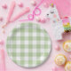 Sage and White Buffalo Plaid Gingham Paper Plate