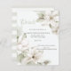 White Magnolia blossoms with pretty sage foliage watercolor details or information card to compliment our sage magnolia floral blossom wedding invitation set.