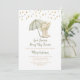 Celebrate your little bundle of joy with this charming gender neutral baby shower invitation featuring a soft watercolor sage umbrella, oatmeal ivory rain boots, and delicate cream florals under champagne gold raindrops.