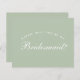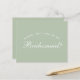 It is just white text on sage green background (a modern colour, popular for the bridesmaid dresses). The word Bridesmaid on the front and the message on the back are written in an elegant calligraphic script, the arched text "[Name] will you be my" above the word Bridesmaid in small caps.