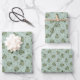 Tossed multi-directional kids pattern with cute hand-drawn sage green frogs set on a laurel green bubbles background. This design has a fixed background, but the size and position of the pattern can be changed. This is a great design for pet or pond reptile loving kids. This product consists of three sheets of wrapping paper each with a slightly different scale of the pattern.