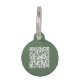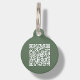 Customisable sage green QR code pet ID tag. This pet tag features a scannable QR code that enables anyone with a smartphone to access important information about your pet. You can easily generate a brand new QR code on the design via the "personalise this template " feature. Just add the URL of your contact webpage / social media page or you can even add your email address to the area provided.