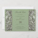 This Art Nouveau-inspired save the date invitation is a testament to timeless elegance. The sage green backdrop exudes a sense of calm and sophistication, while the intricate silver designs offer a striking contrast. The card features an elaborate floral and foliate motif, with graceful curves and natural forms that embody the Art Nouveau style. Each corner is embellished with detailed silver illustrations that shine against the muted green, reminiscent of a serene garden. This save the date invitation is not just a precursor to the event but a piece of art in itself, promising an elegant and memorable wedding.