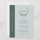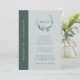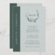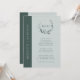 All in One with Details Modern Bold Typography Emerald and Sage Green Monogram Wreath Wedding Invitation... Our "All in One" sage and emerald green wedding invitation features bold serif typography combined with sans serif text for a simple and trendy monogrammed wedding invitation. The emerald green monogram wreath and leafy illustrations are hand-drawn artistic inked botanicals... giving a unique and stylish look for modern brides. The back of the invitation contains all of the details you would typically see on separate cards in the wedding packet, including reception time and venue, accommodation options, wedding website, RSVP and registry information. This modern minimal style front and back wedding invitation was designed to be trendy, time-saving, and tree-conserving. All example text can be easily revised with your own information on the personalisation template.