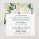 This wedding details card shares reception celebration information, accommodations, and your wedding website in one streamlined insert. Soft watercolor ivory roses and sage greenery create an elegant garden look with easy-to-read typography. Backside features a coordinating full watercolor floral pattern to match the suite. Personalise all wording, venues, hotel info, and URL.