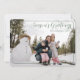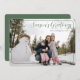 Full photo holiday card with Season's Greetings with love from text and rounded corner frame in sage green.