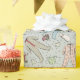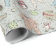This gender neutral winter/Christmas baby shower wrapping paper features a hand-drawn pattern of Christmas baby bodysuits, adorable winter stuffed animals (penguin, reindeer, teddy bear) and bibs, bottles, pacifiers and xmas gifts, all against an elegant soft sage green background with scattered cute little stars.