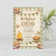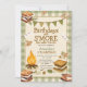 Featuring a warm neutral gingham background, toasty marshmallows, a glowing campfire, and stacked s’mores, this charming design is perfect for a camping-themed birthday, outdoor fall party, or backyard bonfire celebration.