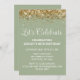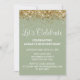 Sage & Gold Glitter 50th Birthday Let's Celebrate Invitation