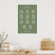 Sage Green 11 Table Wedding Seating Chart Poster, please personalize the names of the couple and the names of the guests along with any of the other text that you may wish to personalize. A stylish seating chart poster featuring elegant white text on a lovely sage green background.