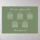 Sage Green 5 Table Wedding Seating Chart Poster, please personalise the names of the couple and the names of the guests along with any of the other text that you may wish to personalise. A stylish seating chart poster featuring elegant white text on a lovely sage green background.