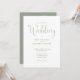 This sage green elegant script wedding invitation can be personalised with all your special wedding day information on the reverse, including your RSVP, accommodation, and additional details. Designed by Thisisnotme©
