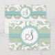 Sage Green and Aqua Damask Wedding RSVP Card
