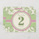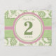 Green and Pink Victorian Floral Damask Wedding Table Number Cards