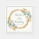 Beautiful birthday party napkin with a with a sage green and gold faux glitter frame with floral flower arrangements. The words can be changed to suit your own details or requirements