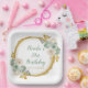 Beautiful birthday party plate with a sage green and gold faux glitter frame with floral flower arrangements. Perfect for a birthday party. The words can be changed to suit your own details or requirements