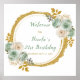 Sage Green and Gold Elegant Flowers Birthday Party Poster