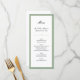 This classy wedding menu card offers a clean white background accented with a sage green and gold border. The sage green colour can be changed by choosing customise.