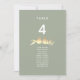 Modern sage green wedding seating chart card featuring faux gold lovebirds illustration, clean white typography, and space for table number and personalised guest list. A stylish and practical addition to your reception that helps guests easily find their seats. Perfect for romantic, elegant, or botanical weddings. Part of a matching wedding suite in sage green and gold.