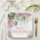 Beautiful birthday party plate with sage green and pink floral arrangements. Perfect for a birthday. The words can be changed to suit your own details or requirements