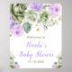 Sage Green and Purple Floral Baby Shower Welcome Poster